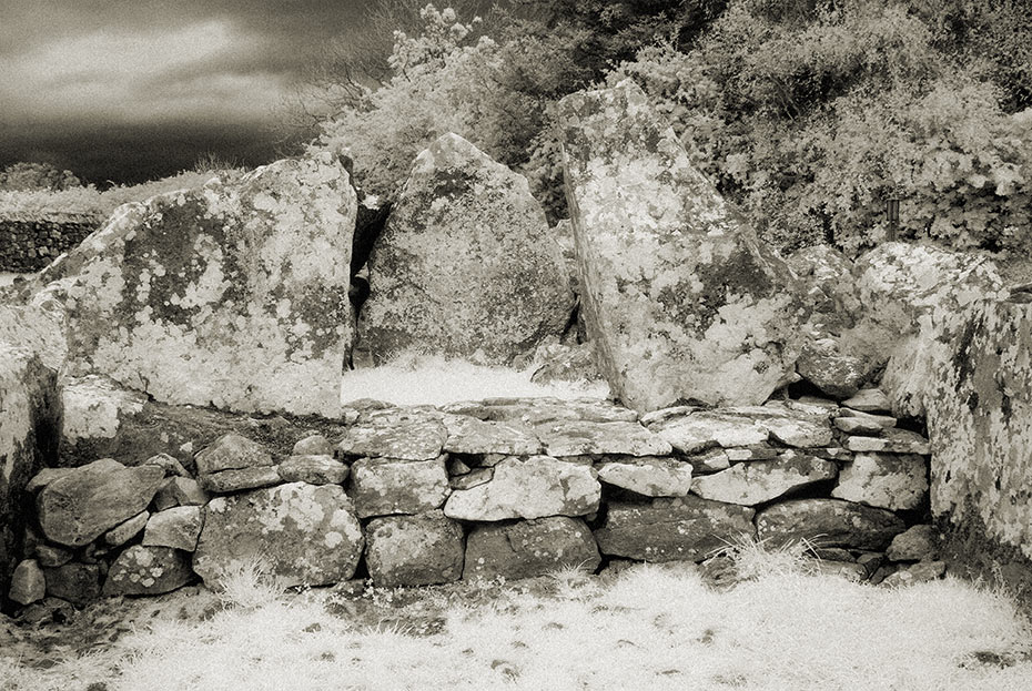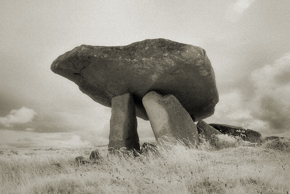 Kilclooney More Portal Tomb colour photograph and Infrared photograph from same perspective