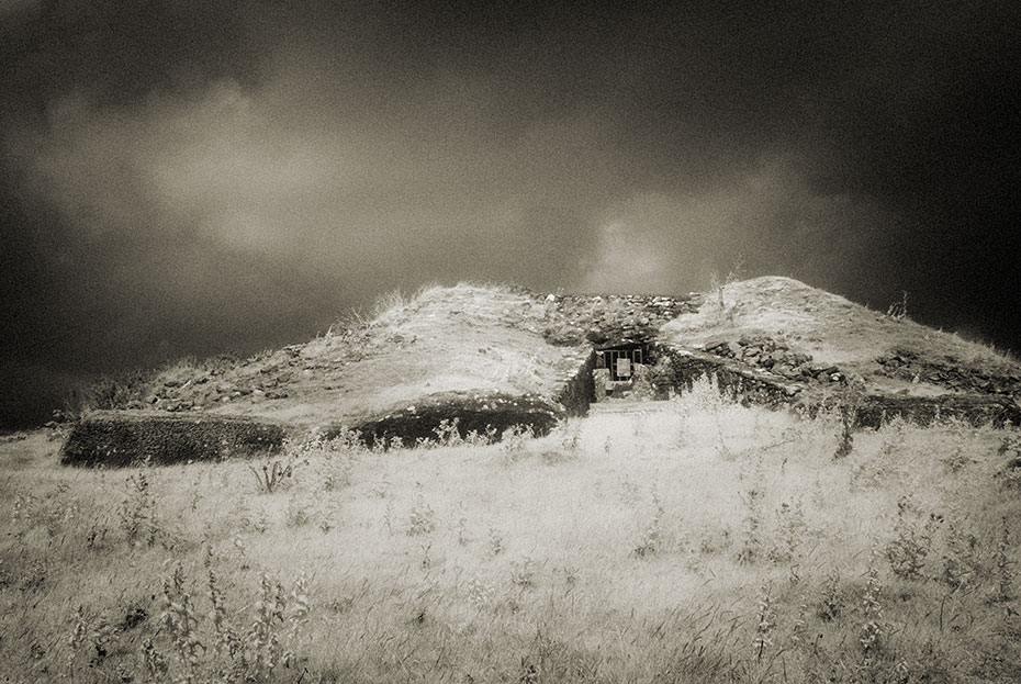 The Equinox Stone in the chamber of Cairn T which is illuminated by the sun at sunrise on the Spring and Autumnal Equinoxes